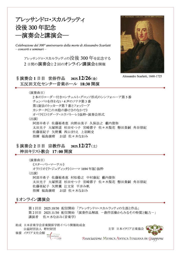 アレッサンドロ・スカルラッティ没後300年記念 講演会と演奏会