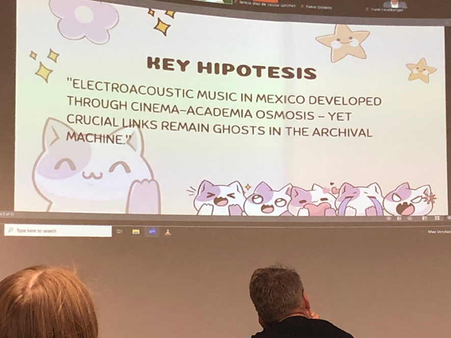 2日目は(前夜にだいぶ皆で飲んだせいもあり)、だいぶ打ち解けた雰囲気のなか、クイア・アーティストの「失われた声」に関する発表、そして筆者と同じく技術者に焦点をあてた発表、さらにはクシェネックの電子音楽や「フランコ政権下のスペインにおける電子音楽」などの発表を聞いた。もちろん全てを完全に理解できたわけではないのだが、どれも初めて知ることばかりで面白い。