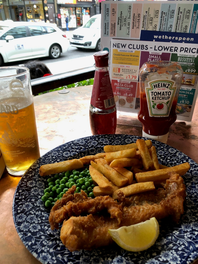 ちなみに、イギリスといえば物価の高さで有名だが、この国を旅した人ならばウェザースプーン(Wetherspoon)というパブチェーンを知っているはず。この店はイギリスの至るところに存在し(小さな町のハダースフィールドにも2件あった)、しかも日本のチェーン店と異なり、おそらくそれぞれがフランチャイズ的なかたちでチェーンに加入しているので、各店にちゃんと個性がある。ともかく他のパブの半額くらい――すなわちだいたい日本の値段――なので、今回のハダースフィールド、そしてその後のロンドン滞在でも全面的にお世話になってしまった。ウェザースプーンでビールとフィッシュ&チップスを頼んでおけば、円安もさして気にならない。もしもご存じない方がいらしたら、ぜひ試していただきたい。