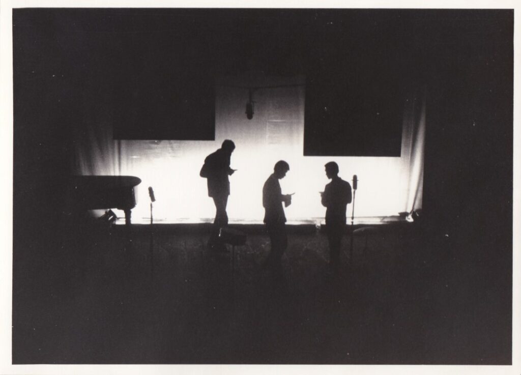 図2:1966年11月6日に大阪の日立ホールで開催された演奏会「第7回アート・チクルス定期演奏会」における一柳慧《電気メトロノームのための音楽》の演奏